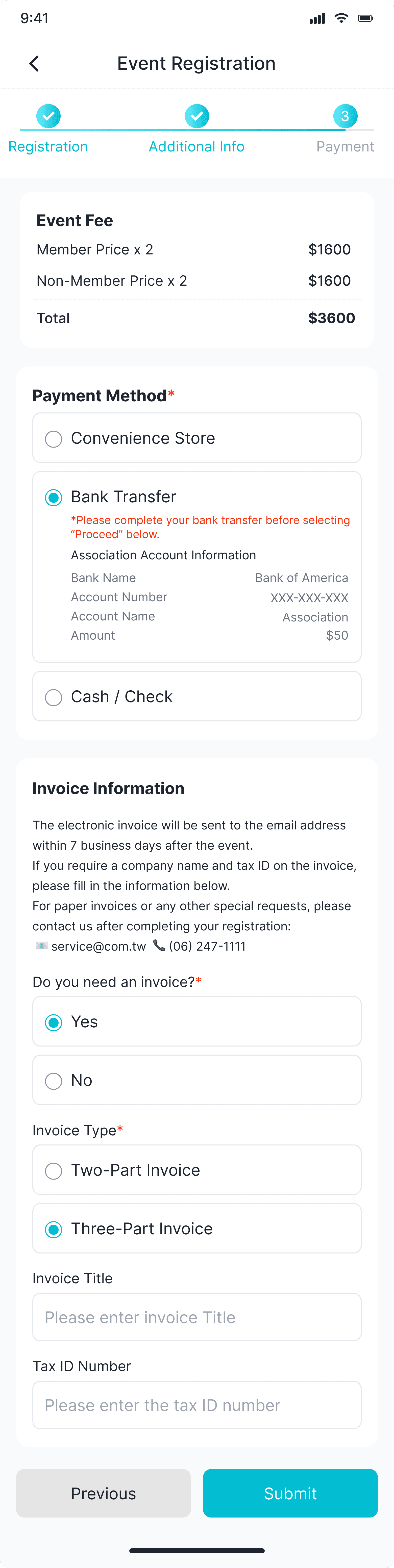 Supports multiple attendees under one company account, allowing administrative staff to register several participants at once in a single form.